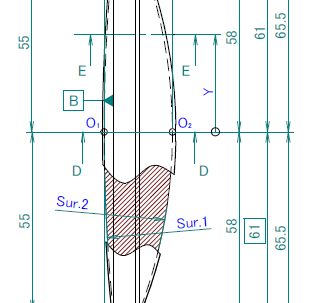 いろいろありますが、覚えておくといいのは、光学的有効範囲を指定する場合ですね。回転対称形の場合は、![]() 図5.光学的有効径 というように指示しますが―。 | |