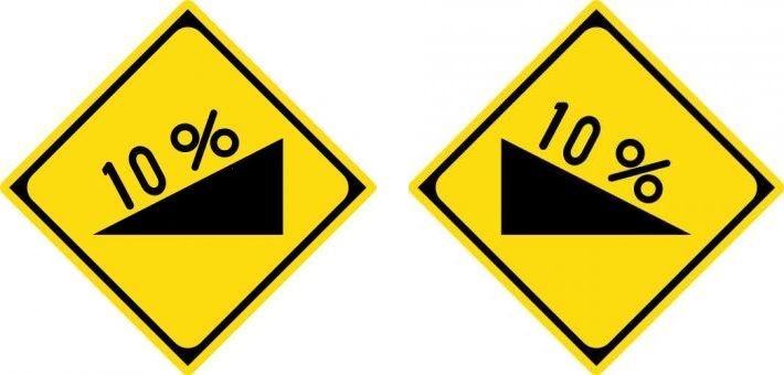 では、1つ質問しましょう。次のような道路標識があった場合、![]() 図1.道路標識 どちらが昇り勾配だと思いますか?? | |