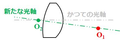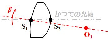 そうすると、チルトしたらしたで、入射面の曲率中心O1と射出面の曲率中心O2を結べば、新たな光軸が定義できませんか??![]() 図3.新たな光軸 | |