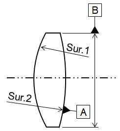 但し、このような指示だとレンズ面の情報はなくなりますし、長焦点のレンズには不向きです。 一方で、光学性能がレンズの総体として議論されるならば、寧ろこちらの指示の方が好ましいとも考えられます。また、光を入射した結果として公差が規定できるので、検査もやりやすいですね。 | |