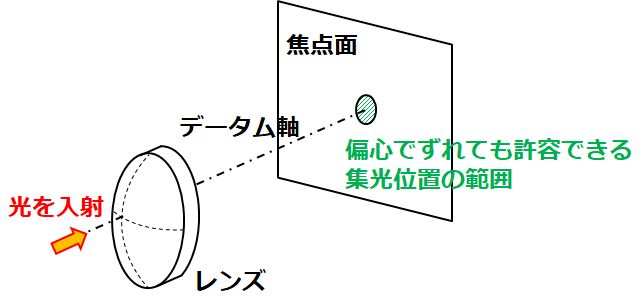 ![]() | 入射面も射出面も、偏心については方向性を問わないってことなら、このレンズに光を入射させたときの集光位置は、ある円形の範囲内に収まるんじゃないですか?? | |