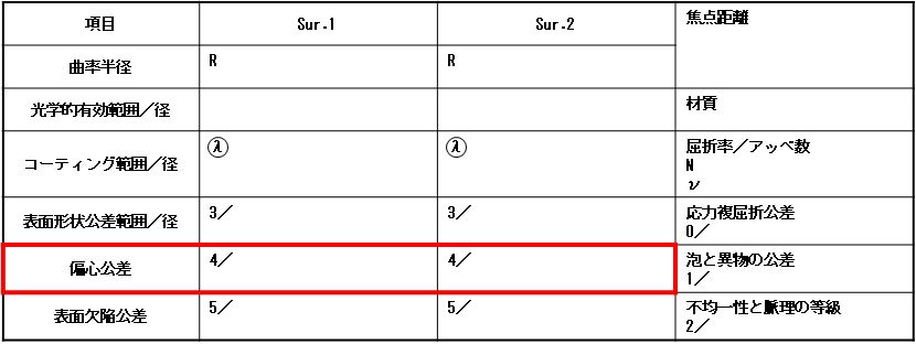 ![]() | 入射面と射出面は独立に公差設定するから、問題ないですよ。 | |