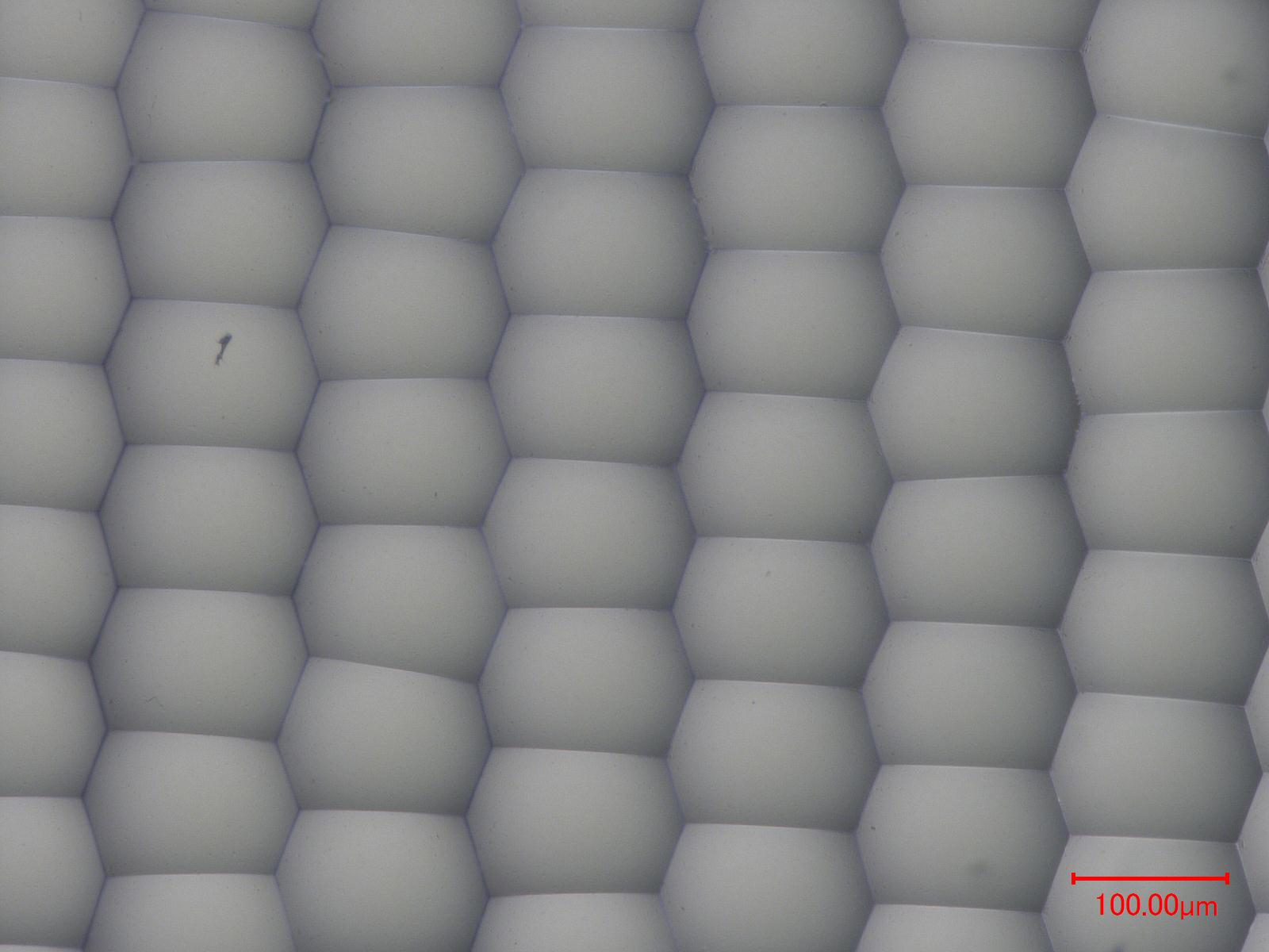 ![]() | 配列そのものは周期的ですが、マイクロレンズの頂点の配列はランダムになってます。 | |