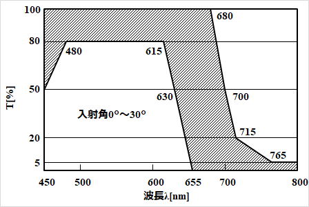 そういう記載方法もあります。その場合は注記で、 λ=○±○nmで透過率○%以上 とか、 λ=○±○nm、λ=△±△nm、λ=□±□nmで透過率○%以上 と指示しますね。ミラーの反射膜も同じです。 | |||||||||||||